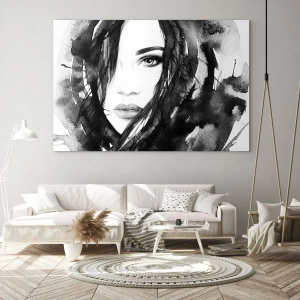 Quadro em vidro - Retrato de uma dama a preto e branco - 100x40 cm