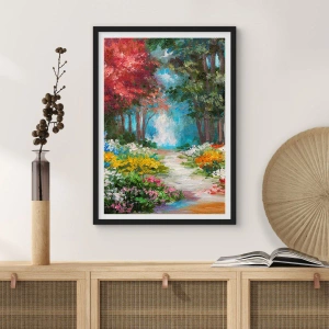 Pôster com moldura preta - Jardim florestal, floresta florida - 91x61 cm