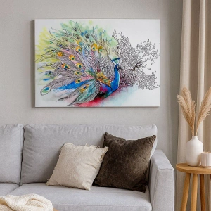 A tela é esticada na moldura. Os lados e bordas são impressos para criar uma continuação da imagem. O quadro está pronto para ser pendurado na parede. Cada produto tem um gancho ligado à moldura e um conjunto de montagem (parafuso + cavilha).