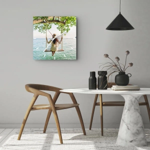 Relógio de parede - Relógio em vidro - Mulher em um balanço à beira-mar em um cenário de verão - 30x30cm - A vida é bela - Decoração de parede moderna para a sala de estar, cozinha e quarto ARTTOR