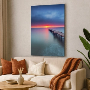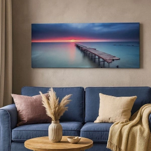 - Uma paisagem mágica de um píer de madeira que se abre para o mar, tendo como pano de fundo o pôr do sol. Uma mistura sutil de natureza, cor e tranquilidade que traz harmonia a qualquer ambiente. Perfeito para uma sala de estar ou quarto.