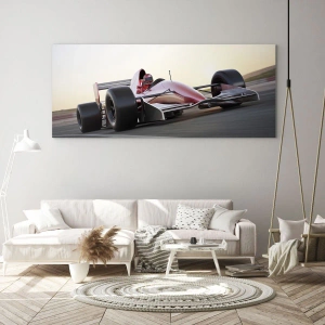 - Esta pintura retrata um carro de Fórmula 1 dinâmico correndo em uma pista ao pôr do sol. Perfeito para fãs de automobilismo e corrida, ele complementa interiores modernos.