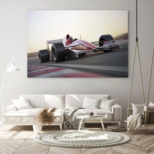 O motivo da Fórmula 1 traz dinamismo e energia ao interior, complementando perfeitamente arranjos minimalistas, esportivos ou industriais. O vermelho expressivo do carro de corrida contrasta com os tons sutis da pista e do céu, criando uma composição harmoniosa e emocionante.
