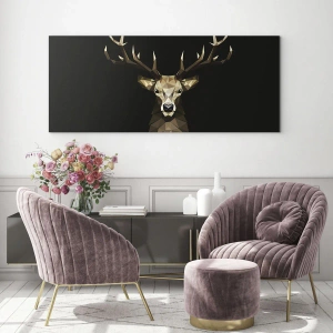 Quadro em vidro - Veado geométrico em fundo preto - 70x50cm - Veado cubista - Decoração de parede moderna para a sala de estar e quarto ARTTOR