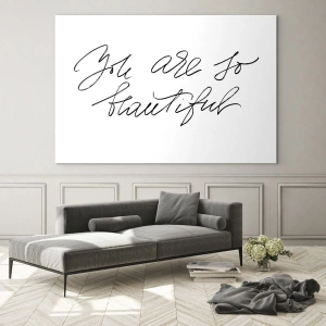Quadro em vidro - Citação 'Você é tão linda' em um estilo caligráfico elegante - 70x50cm - De verdade, acredite... - Decoração de parede moderna para a sala de estar e quarto ARTTOR