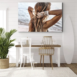 A tela é esticada na moldura. Os lados e bordas são impressos para criar uma continuação da imagem. O quadro está pronto para ser pendurado na parede. Cada produto tem um gancho ligado à moldura e um conjunto de montagem (parafuso + cavilha).