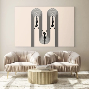 Quadro em vidro - Silhuetas negras de figuras suspensas em arcos rítmicos - 70x50cm - De cabeça para baixo - Decoração de parede moderna para a sala de estar e quarto ARTTOR