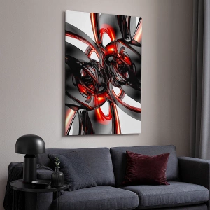 • Esta pintura apresenta gráficos 3D abstratos com elementos predominantemente pretos e vermelhos. Seu design moderno e formas geométricas conferem ao interior um toque futurista.