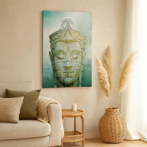 - Esta impressão em tela retrata uma estátua de Buda envolta em uma névoa delicada, tendo como pano de fundo a vegetação. Perfeita para interiores inspirados pela harmonia e espiritualidade.