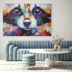Quadro em vidro - Um retrato vibrante e colorido de um guaxinim pintado com pinceladas ousadas - 70x50cm - Apenas boas emoções - Decoração de parede moderna para a sala de estar e quarto ARTTOR
