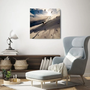 Relógio de parede - Relógio em vidro - Um esquiador em uma encosta nevada sob o sol - 30x30cm - O desafio das montanhas - Decoração de parede moderna para a sala de estar, cozinha e quarto ARTTOR