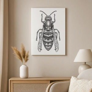 Do Planeta dos Insetos é uma impressão em tela moderna que retrata um motivo de desenho animado de uma vespa sobre fundo branco. Os detalhes e o contraste do preto e branco tornam este motivo minimalista elegante e universal. É o elemento decorativo perfeito para quem busca toques únicos em design de interiores.