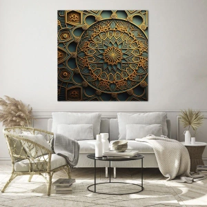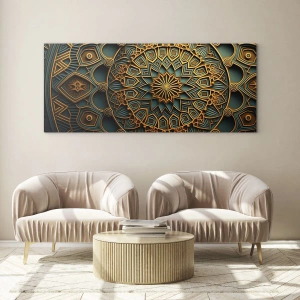 Quadro de Parede – Em Atmosfera Árabe – Ornamento Dourado e Turquesa no Estilo de um Mosaico Árabe