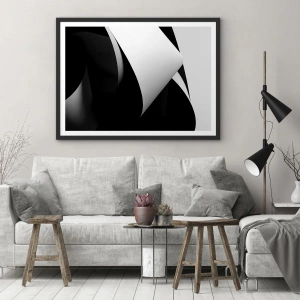 - pôster apresenta uma elegante composição em preto e branco, onde luz e sombra criam formas abstratas. O design minimalista e as formas geométricas conferem ao interior um caráter moderno.