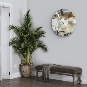 O relógio é feito de vidro durável de 4 mm de espessura. O vidro retém as cores naturais da impressão