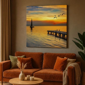 A tela é esticada na moldura. Os lados e bordas são impressos para criar uma continuação da imagem. O quadro está pronto para ser pendurado na parede. Cada produto tem um gancho ligado à moldura e um conjunto de montagem (parafuso + cavilha).