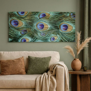 Adicione um toque inspirado na natureza ao seu interior com esta decoração original. A pintura "Detalhes de penas de pavão em cores vibrantes" é a escolha perfeita para quem deseja enfatizar o caráter individual de seu interior por meio da beleza e da singularidade da natureza.