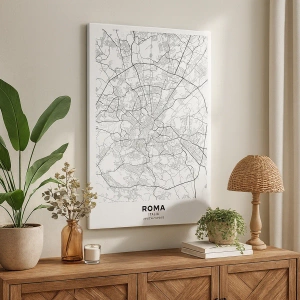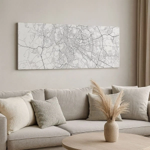 A tela é esticada na moldura. Os lados e bordas são impressos para criar uma continuação da imagem. O quadro está pronto para ser pendurado na parede. Cada produto tem um gancho ligado à moldura e um conjunto de montagem (parafuso + cavilha).
