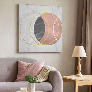 • Abstrato, Arte, Círculos, Abstrato, Pastel, Para o escritório, Para o escritório, Para a sala de jantar, Para o hall, Para a sala de estar, Para o quarto, Rosa, cinza, dourado, Quadrado