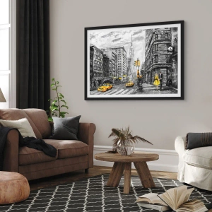 Pôster com moldura preta - Uma rua de Nova York com táxis amarelos ao fundo - 50x70cm - Um conto de Nova Iorque - Decoração de parede moderna para a sala de estar e quarto ARTTOR