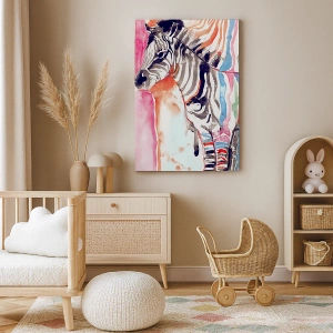 Arte de Parede - Piada Despreocupada da Natureza - Zebra Colorida contra um Fundo de Padrões Abstratos em Aquarela