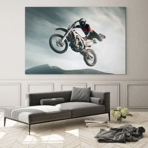 Um motociclista realizando acrobacias no ar é uma pintura cheia de dinâmica e adrenalina, que encanta com sua energia e coragem. Ela retrata o momento extraordinário de uma motocicleta voando contra um cenário pitoresco de montanhas, criando uma composição cheia de emoção e liberdade. É a escolha perfeita para aqueles que são apaixonados por esportes radicais e apreciam desafios.