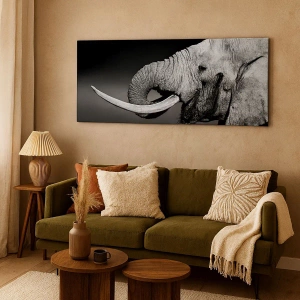 - Esta pintura retrata um retrato em preto e branco de um elefante de perfil. Esta composição minimalista e elegante destaca a beleza da natureza e é ideal para interiores modernos.
