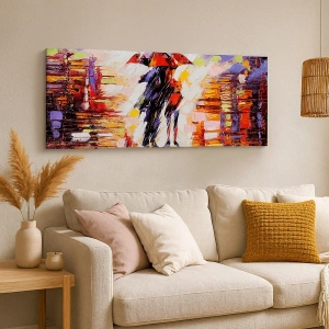 Quadro em tela - Juntos durante a noite e a chuva - 100x40 cm