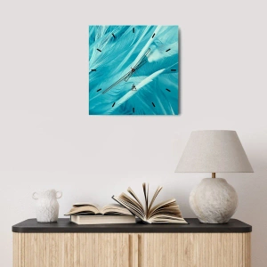 Relógio de parede - Relógio em vidro - Penas azuis em uma foto delicada - 30x30cm - Afogado em penugem - Decoração de parede moderna para a sala de estar, cozinha e quarto ARTTOR