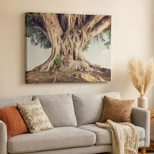 A tela é esticada na moldura. Os lados e bordas são impressos para criar uma continuação da imagem. O quadro está pronto para ser pendurado na parede. Cada produto tem um gancho ligado à moldura e um conjunto de montagem (parafuso + cavilha).