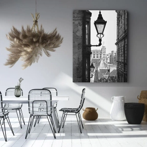 A tela é esticada na moldura. Os lados e bordas são impressos para criar uma continuação da imagem. O quadro está pronto para ser pendurado na parede. Cada produto tem um gancho ligado à moldura e um conjunto de montagem (parafuso + cavilha).