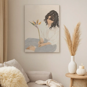 Quadro em tela - Retrato com uma flor exótica - 50x70 cm