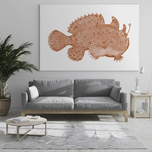 - Esta pintura retrata um peixe de águas profundas em um desenho enferrujado e pontilhado. Uma forma original que combina biologia com uma estética vintage.