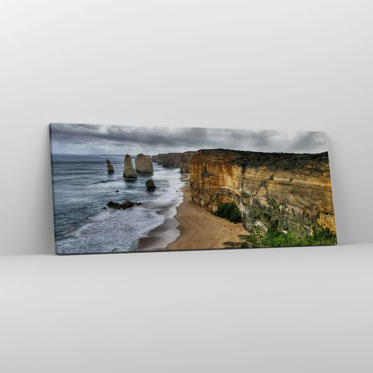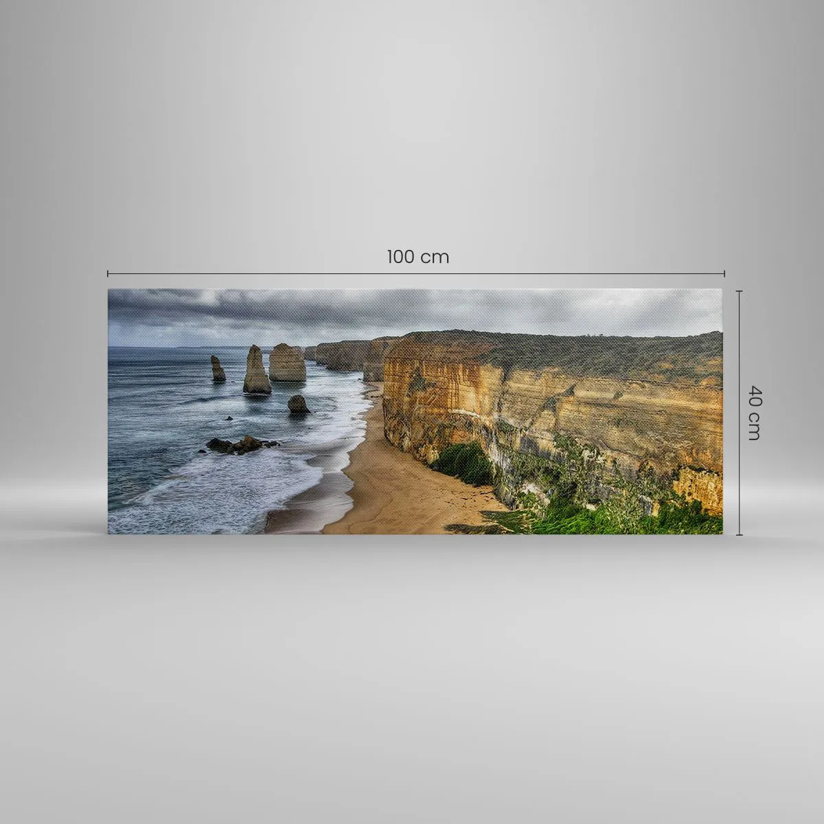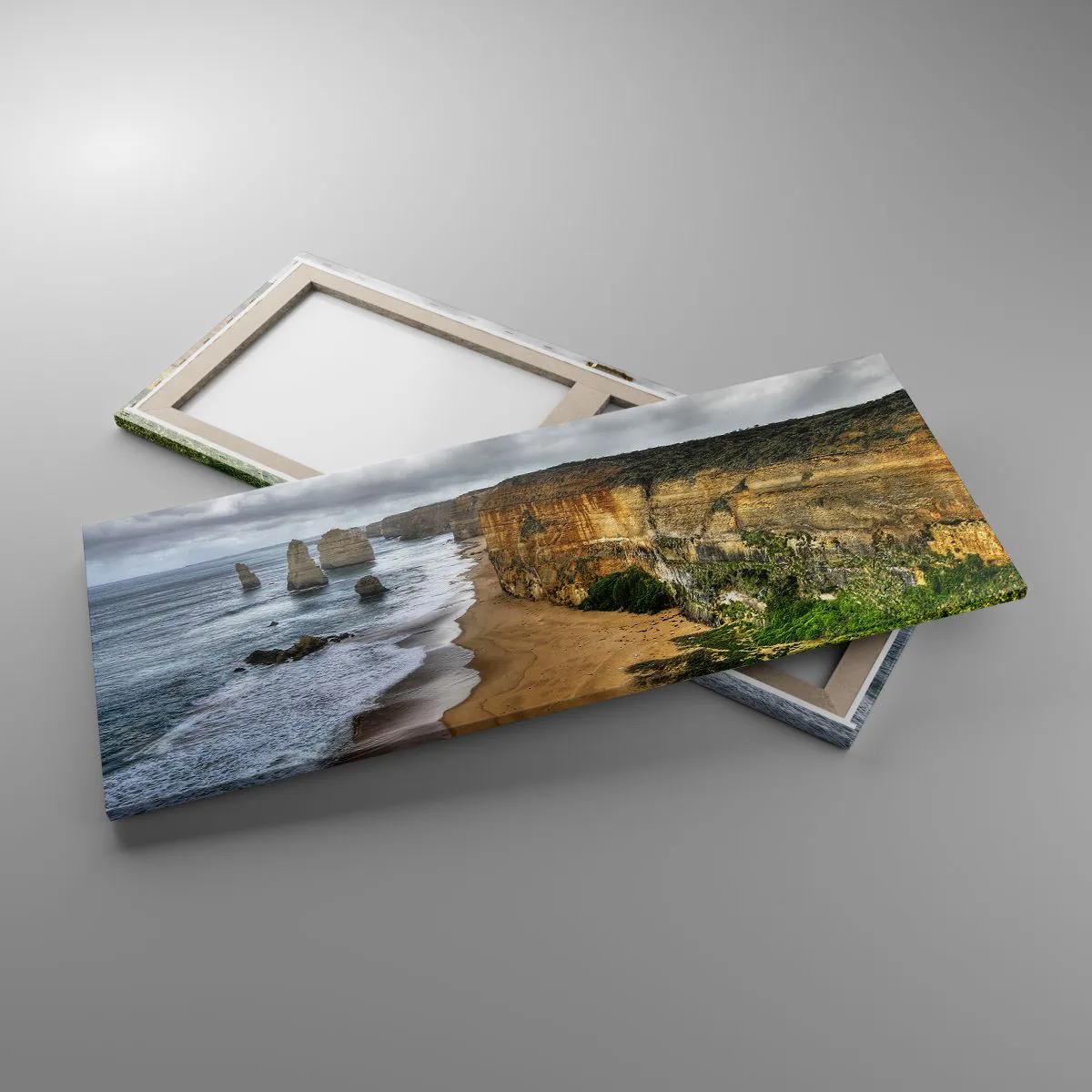 A tela é esticada na moldura. Os lados e bordas são impressos para criar uma continuação da imagem. O quadro está pronto para ser pendurado na parede. Cada produto tem um gancho ligado à moldura e um conjunto de montagem (parafuso + cavilha).