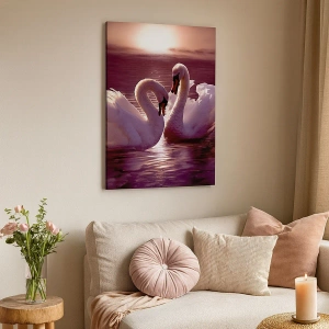 Arte de Parede - Até que a Morte nos Separe - Dois Cisnes em um Lago Calmo ao Pôr do Sol