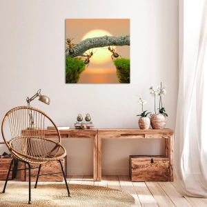 Quadro em tela - Formigas construindo uma ponte de galhos tendo como pano de fundo o pôr do sol. - 70x50cm - Trabalho alegre e colaborativo - Decoração de parede moderna para a sala de estar e quarto ARTTOR