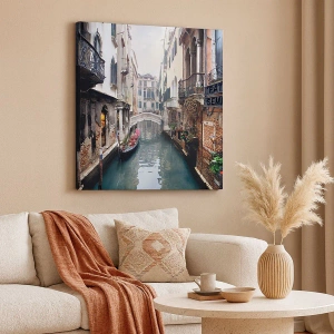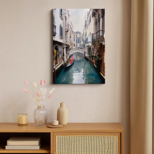 Quadro em tela - Paisagem veneziana com gôndola e ponte - 65x120 cm