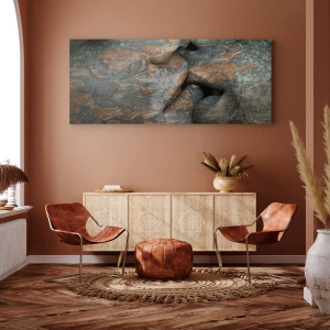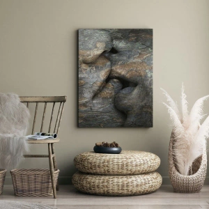 Quadro em tela - Um motivo artístico de um rosto esculpido em rocha com efeito de textura natural. - 70x50cm - Juntos para sempre - Decoração de parede moderna para a sala de estar e quarto ARTTOR