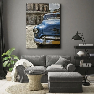 Quadro em tela - Um velho carro azul na rua em estilo retrô - 70x50cm - O antigo é lindo - Decoração de parede moderna para a sala de estar e quarto ARTTOR