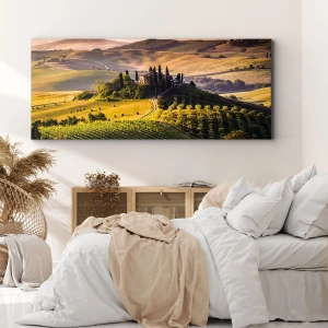 Quadro em tela - Paisagem toscana com vinhedos e uma casa em uma colina - 70x50cm - Arcádia - Paisagem toscana - Decoração de parede moderna para a sala de estar e quarto ARTTOR