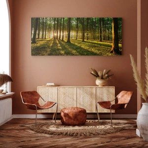 Quadro em tela - O pôr do sol na floresta decídua - 70x50cm - Fotografia de todas as primaveras - Decoração de parede moderna para a sala de estar e quarto ARTTOR