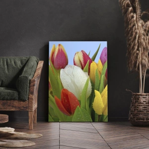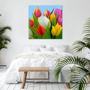 Quadro em tela - Arco-íris floral em gotas de orvalho - 40x40 cm