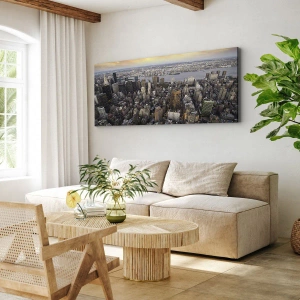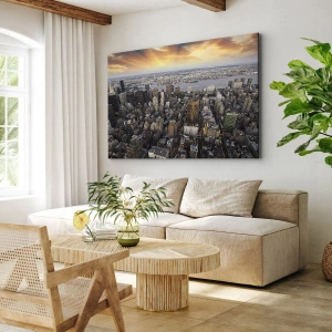 Quadro em tela - Vista da metrópole com o pôr do sol - 70x50cm - O coração pulsante do nosso tempo - Decoração de parede moderna para a sala de estar e quarto ARTTOR