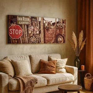 Esta pintura é uma excelente escolha para os amantes de decorações inspiradas no passado. Detalhes como texturas de madeira e a idade das placas e letreiros adicionam profundidade e autenticidade, criando uma atmosfera acolhedora e aconchegante. Será perfeita como decoração em uma sala de estar, sala de jantar, cafeteria ou outros espaços que queiram se destacar com seu estilo único.