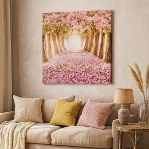 Pintura de parede - Caminho para o Paraíso - Beco de árvores floridas em tons de rosa