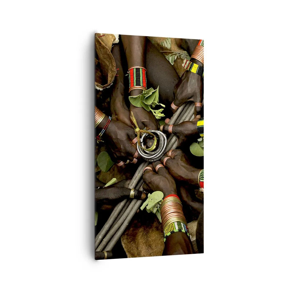 A tela é esticada na moldura. Os lados e bordas são impressos para criar uma continuação da imagem. O quadro está pronto para ser pendurado na parede. Cada produto tem um gancho ligado à moldura e um conjunto de montagem (parafuso + cavilha).