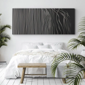 A tela é esticada na moldura. Os lados e bordas são impressos para criar uma continuação da imagem. O quadro está pronto para ser pendurado na parede. Cada produto tem um gancho ligado à moldura e um conjunto de montagem (parafuso + cavilha).