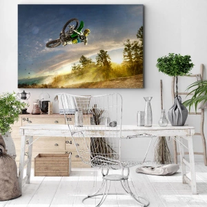 A tela é esticada na moldura. Os lados e bordas são impressos para criar uma continuação da imagem. O quadro está pronto para ser pendurado na parede. Cada produto tem um gancho ligado à moldura e um conjunto de montagem (parafuso + cavilha).