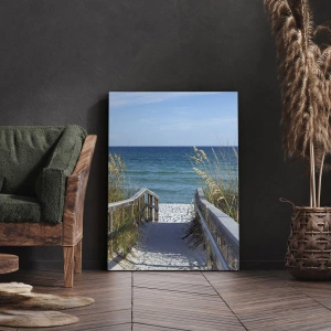 Quadro em tela - Caminho para a praia com vista para o mar - 70x50cm - Ao sol, ao vento - Decoração de parede moderna para a sala de estar e quarto ARTTOR
