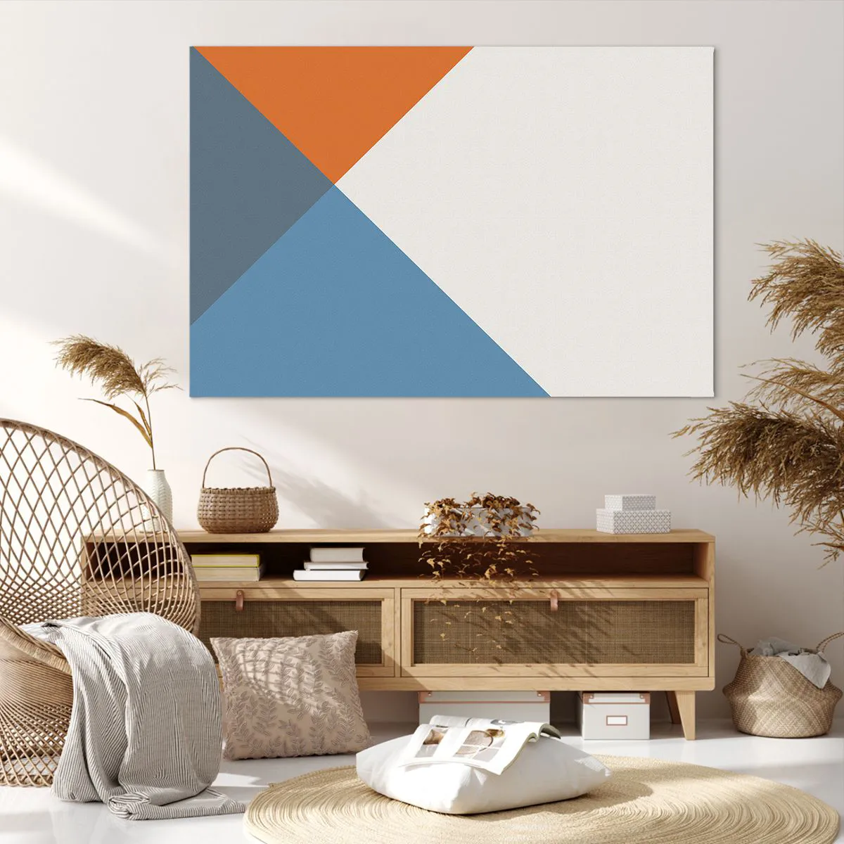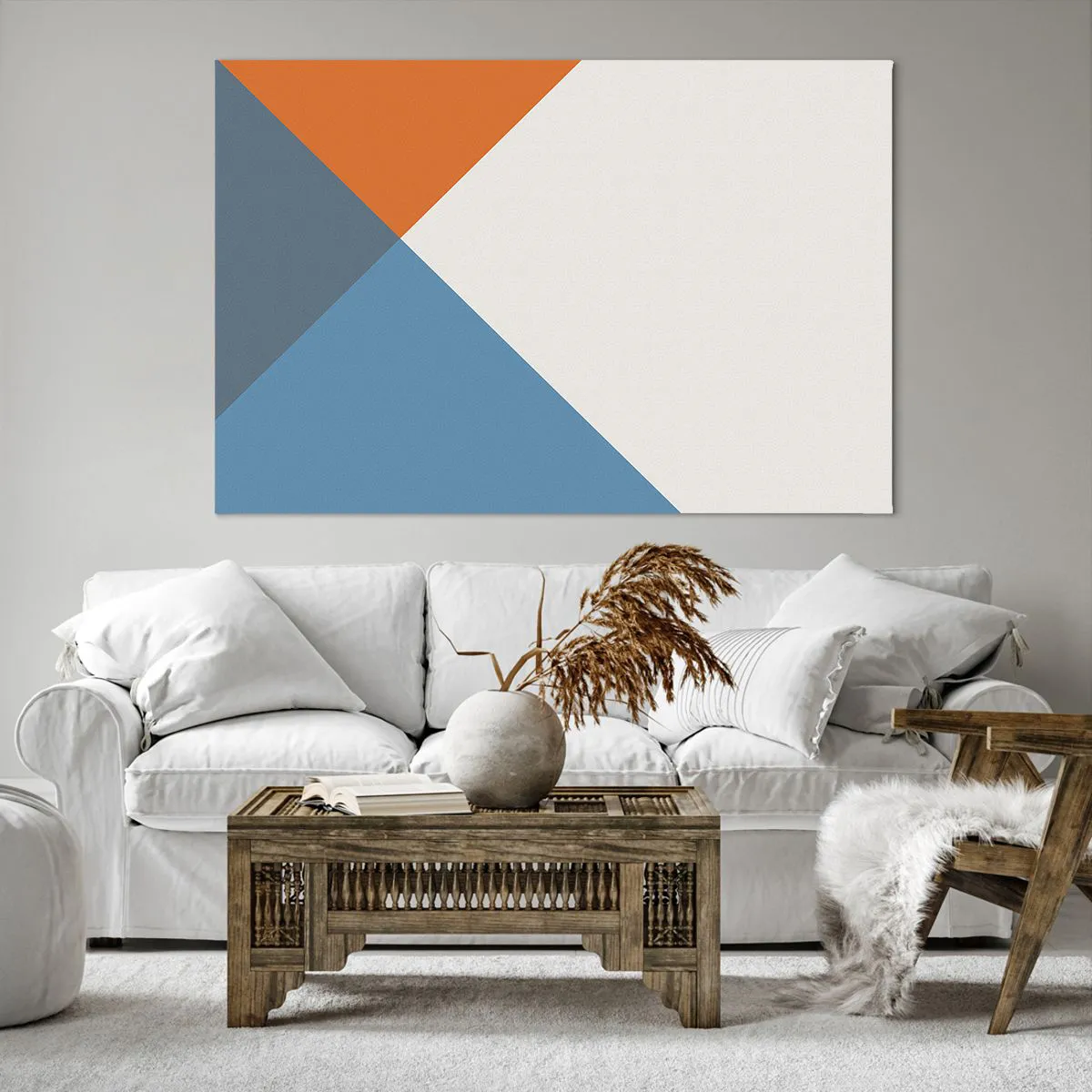 A tela é esticada na moldura. Os lados e bordas são impressos para criar uma continuação da imagem. O quadro está pronto para ser pendurado na parede. Cada produto tem um gancho ligado à moldura e um conjunto de montagem (parafuso + cavilha).